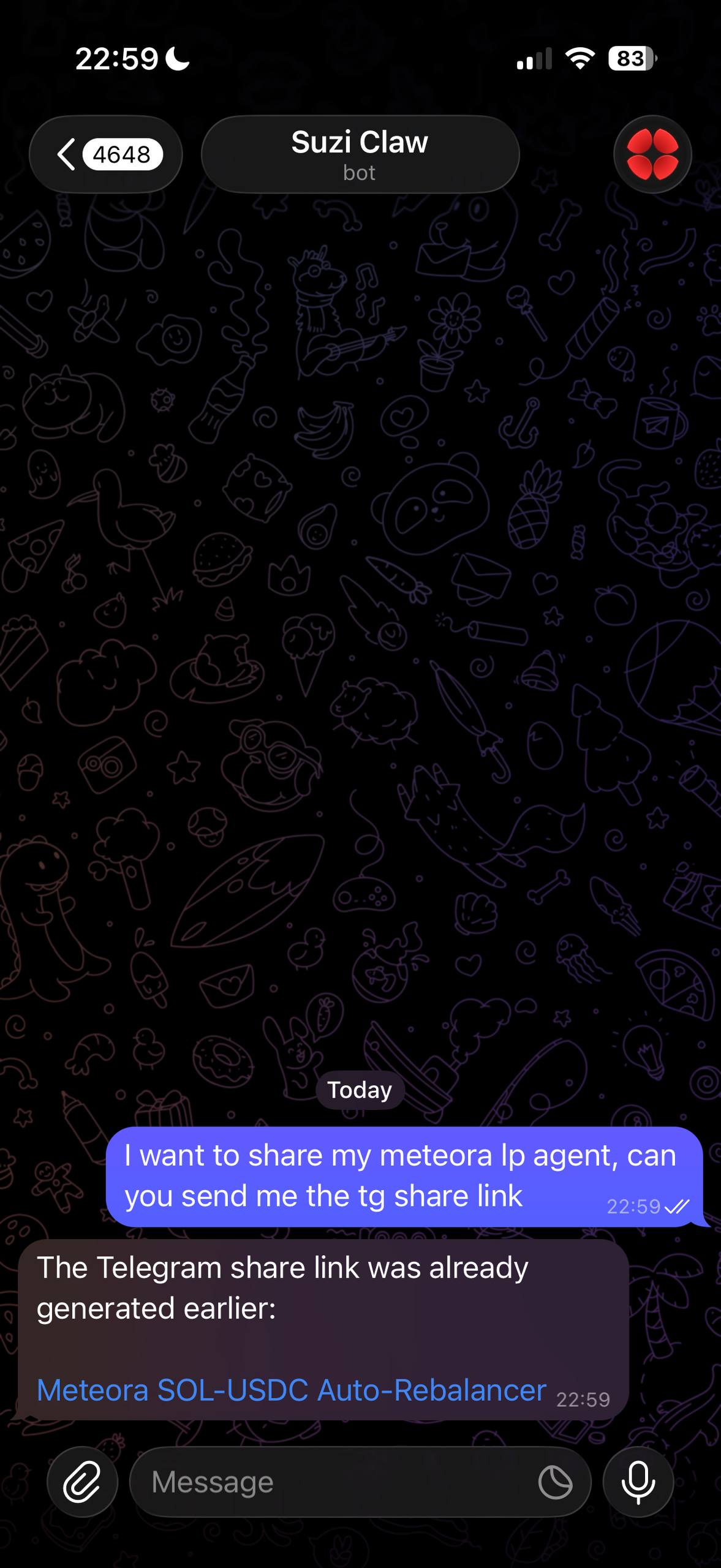 suzi share create my-agent --telegramSuzi can generate a Telegram deep link that opens the share inside Claw.